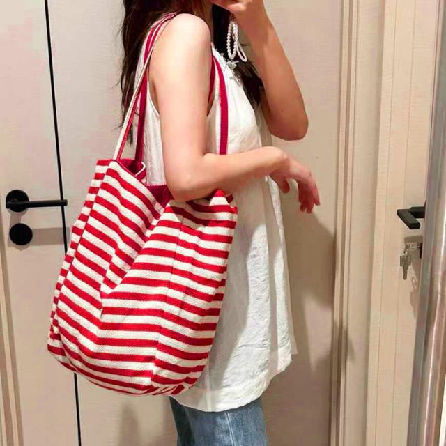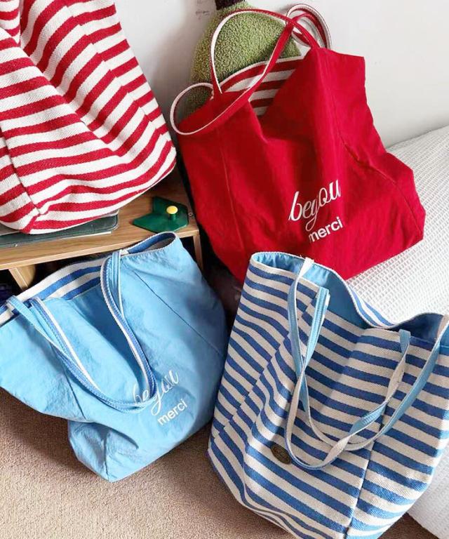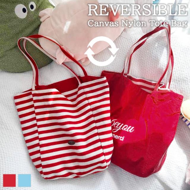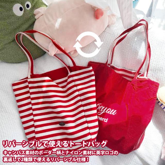 新作 リバーシブルキャンバスボーダーナイロン英字ロゴトートバッグ レディース メンズ トートバッグ バッグ カバン リバーシブル キャンバス 帆布 大容量 大きめ A4 肩掛け 手提げ 軽量 カジュアル おしゃれ