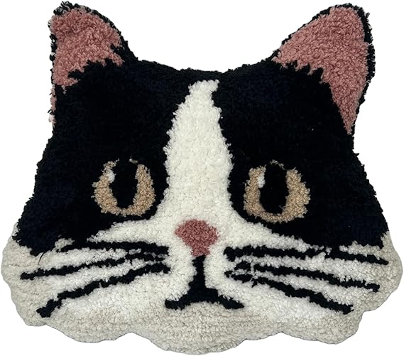 送料無料 クッション 猫顔 ねこ クッション ハチワレ モコモコ ねこ 黒白猫 モコモコ 雑貨 ぬいぐるみ ふわふわ もこもこ モノトーン かわいい 耳つき クリスマス プレゼント 結婚祝 新築祝 ペット ギフト