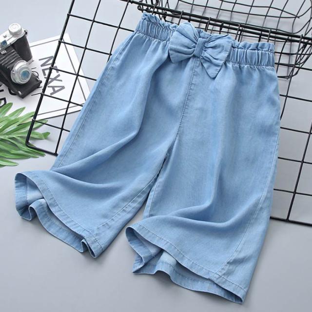 ワイドパンツ キッズ ガウチョパンツ 女の子 七分丈 クロップドパンツ ウエストゴム リボン スカーチョ デニムパンツ ジュニア カジュアル 無地 春夏 スカンツ ナチュラル