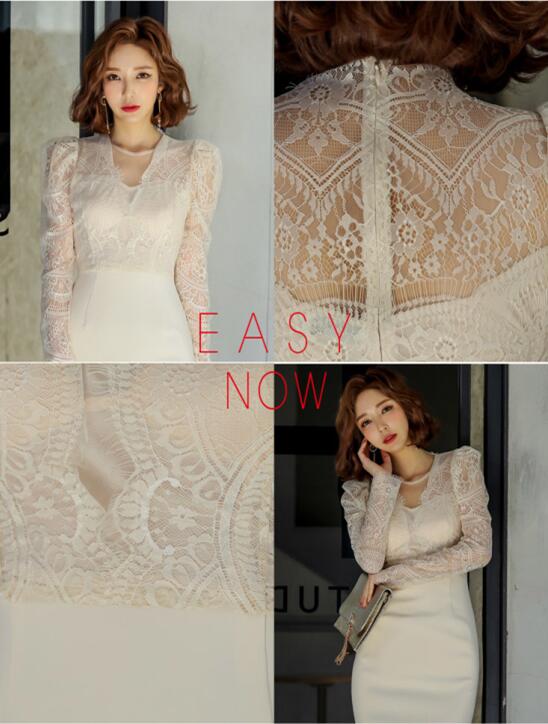 既日発送 レースワンピース タイトワンピース 姫系ワンピース レース タイト ワンピース ひざ丈 タイトスタイル レース刺繍 パーティドレス 長袖 お嬢様 セクシー OL 上品 オフィ ミニワンピース