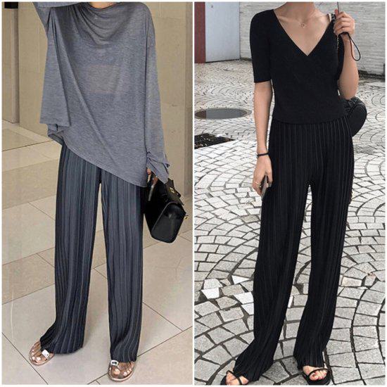 パンツ プリーツ ロング レディース レディースファッション 続々登場 ブラック グレー S M L XL 2XL 3XL 4XL