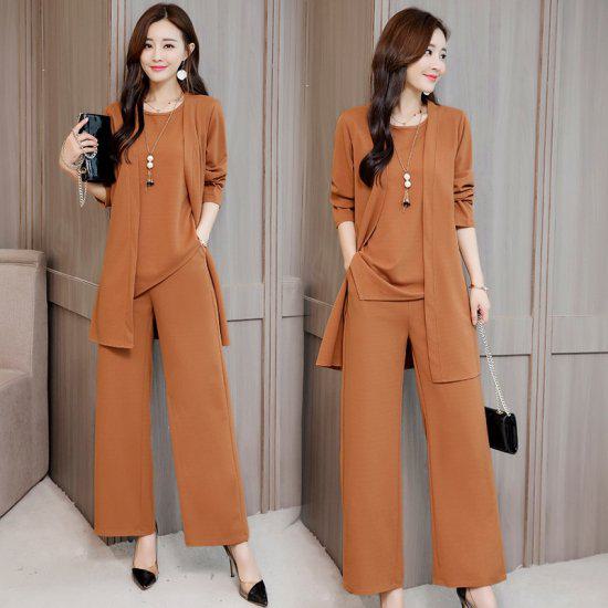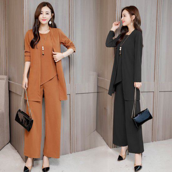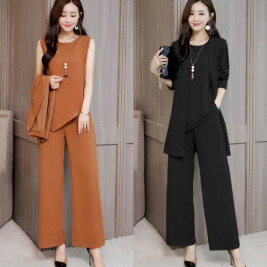 アシンメトリーでデザイン性の高いノースリーブトップス&レッグラインを拾わないワインドパンツ&さらりと羽織れるカーディガンとのお得な3点セットアップです。