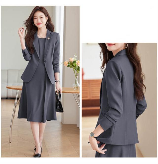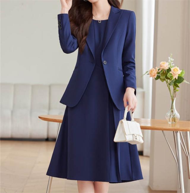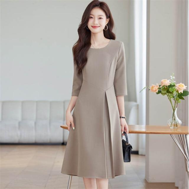 スーツ レディース ワンピーススーツ きれいめ レディーススーツ ママスーツ フォーマルスーツ ビジネススーツ リクルートスーツ ワンピース 袖あり 七分袖 セミフレア ミモレ ビジネス ハイウェスト