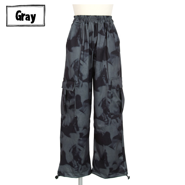 モノトーン配色のタイダイ柄カーゴパンツ。