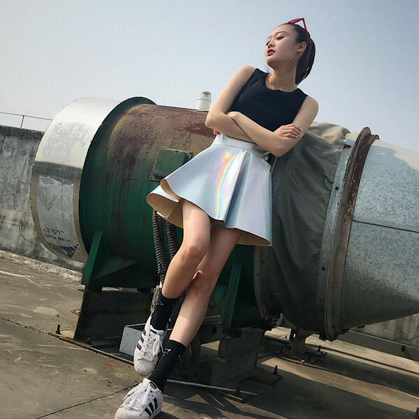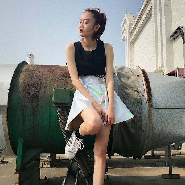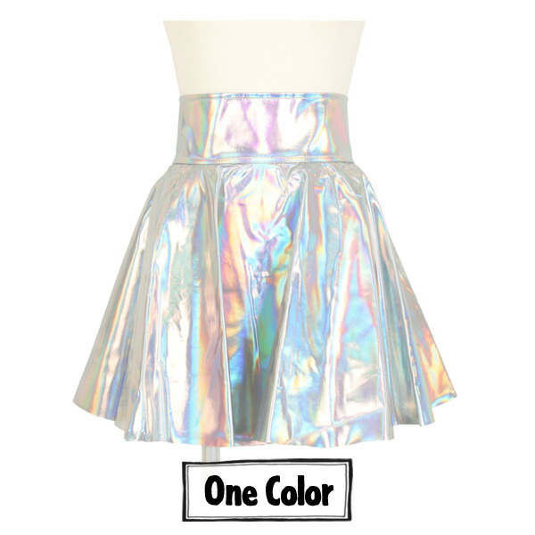 ミニスカート フレア ハイウエスト オーロラカラー キラキラ シルバー ダンス 衣装 ヒップホップ コスチューム 韓国ファッション 個性的 服 原宿系 大きいサイズ