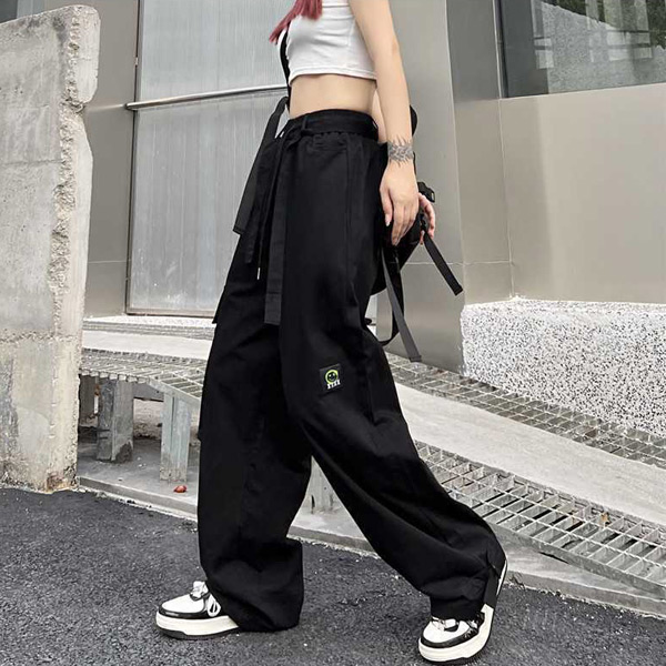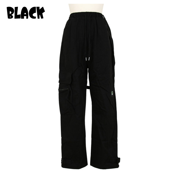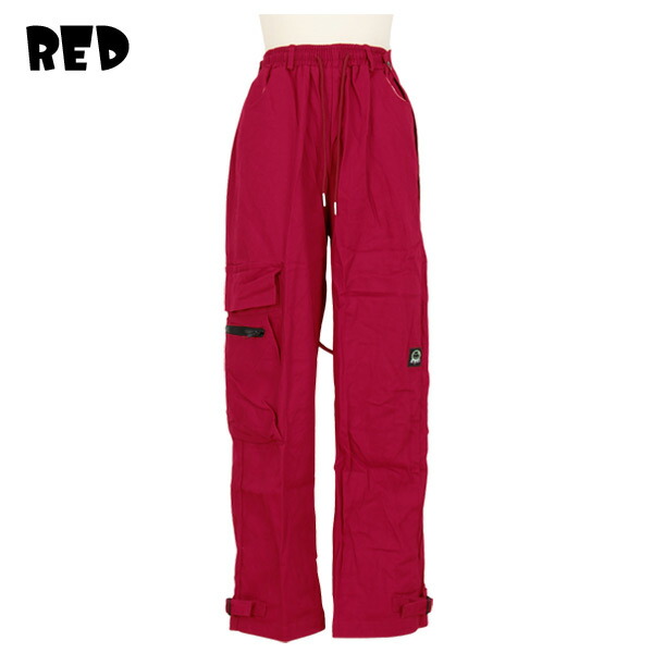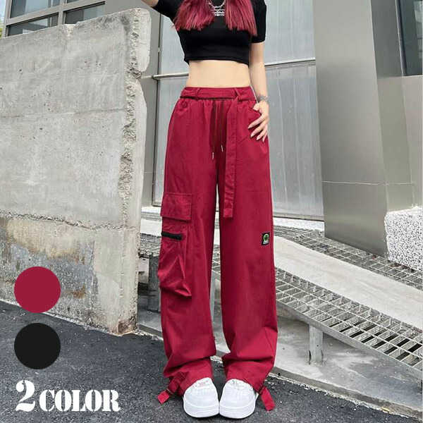 カーゴパンツ ワイドパンツ イージーパンツ カラーパンツ ダンスパンツ ストラップ付き ワンポイント ウエストゴム ドロスト 赤 黒 ダンス 衣装 コスチューム 韓国ファッション 大き ヒップホップ