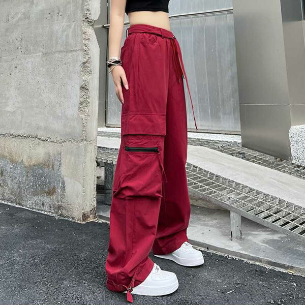 カーゴパンツ ワイドパンツ イージーパ ボトムス パンツ 続々登場 レッド ブラック フリーサイズ