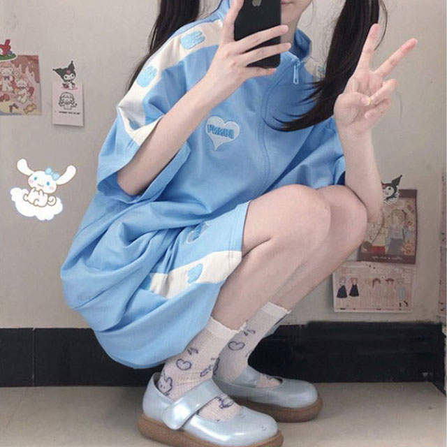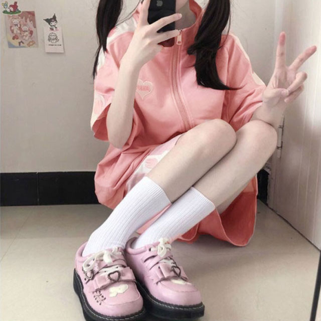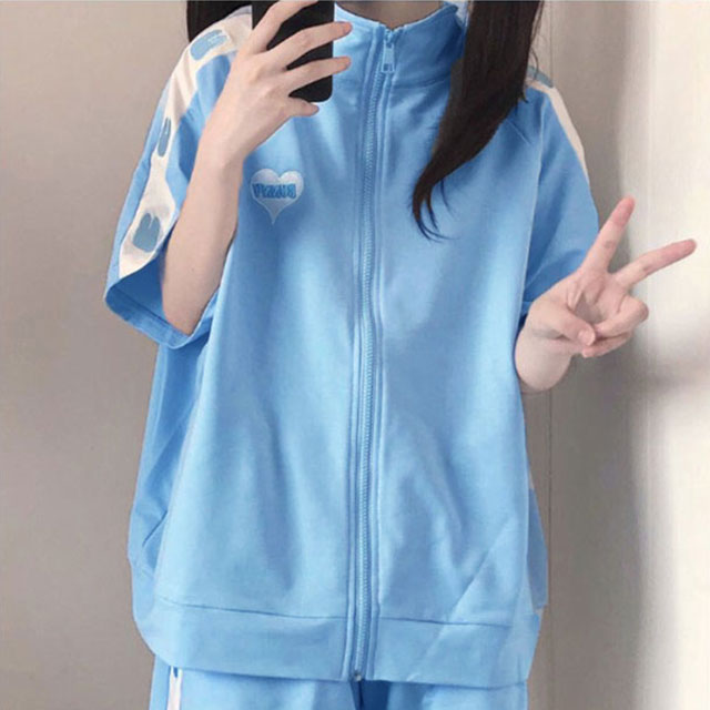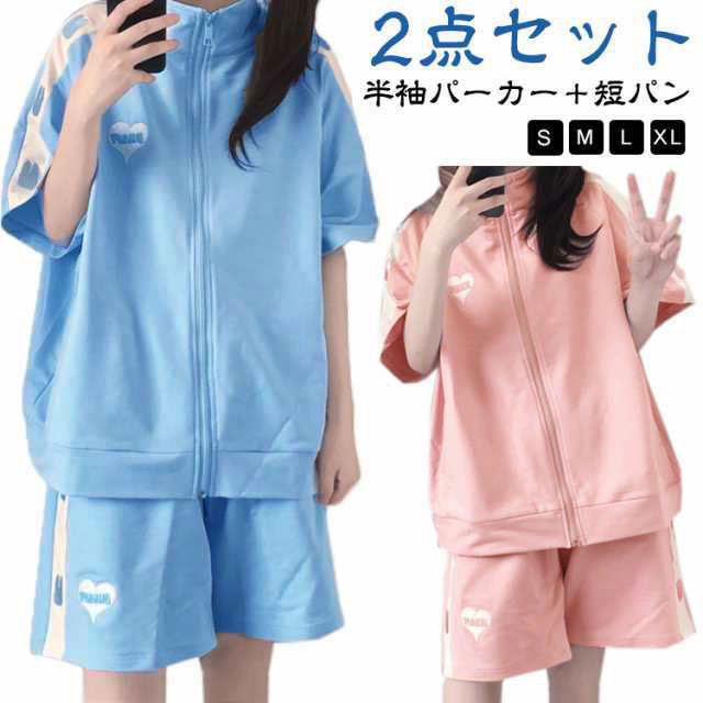 ジャージ 上下セット レディース 2点セット かわいい 春夏 半袖 ゆったり 女子 服 学生 高校生 前開き トップス パーカー ショートパンツ セットアップ 薄手 地雷系 春 夏 可愛い 通学 秋