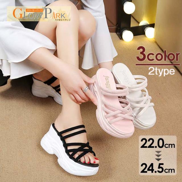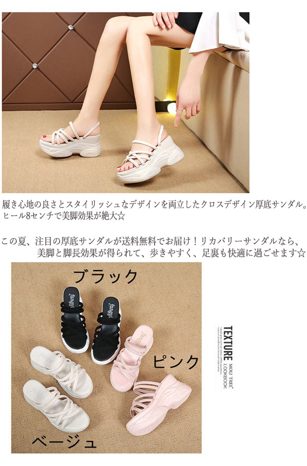 厚底サンダル 美脚 サンダル 厚底 サンダルシューズ レディース 2way さんだる 靴 女性 大人 ヒール8cm シューズ シンプル ピンク ベージュ di ブラック