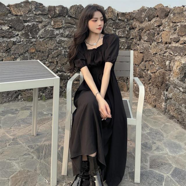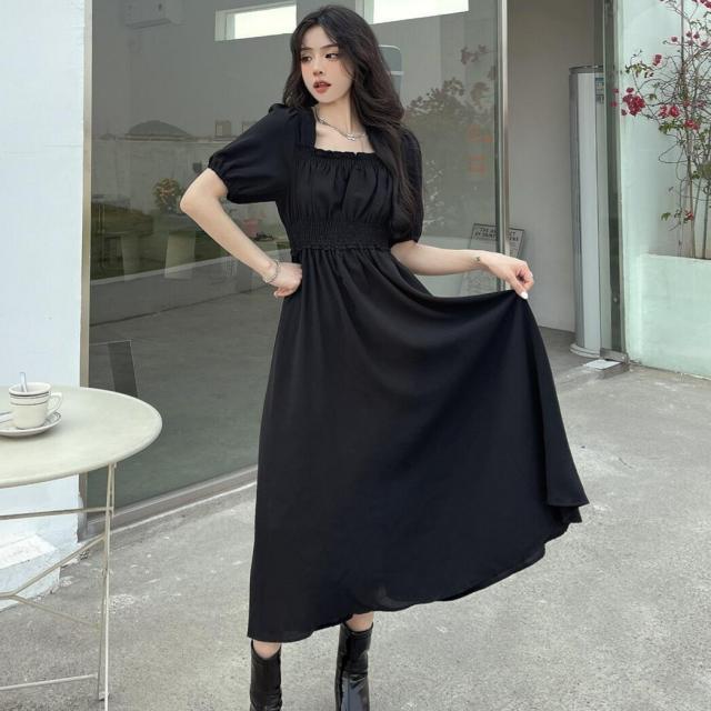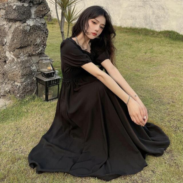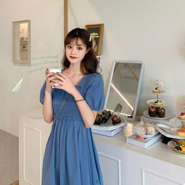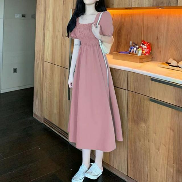 スクエアネックワンピース夏ワンピ大人可 ワンピース 続々登場 ブラック ブルー ピンク M L XL 2XL