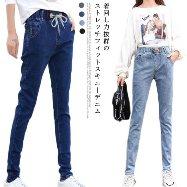 ウエストゴム 美脚 ロング丈 デニムパンツ 伸びる ストレッチ レディース ボトムス ジーパン スキニー パンツ デニム ジーンズ