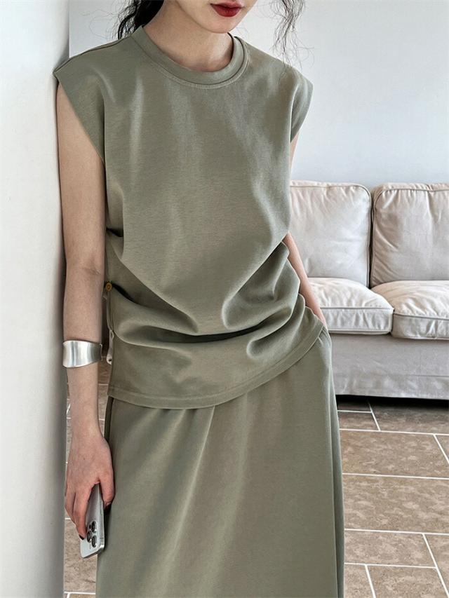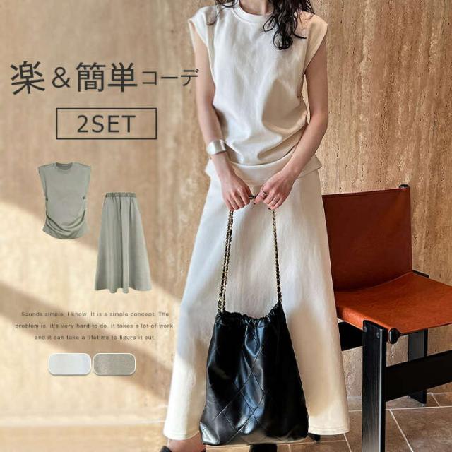 セットアップ カットソー Tシャツ レ スーツ セットアップ スカートスーツ 早い者勝ち グレーグリーン ベージュ M L