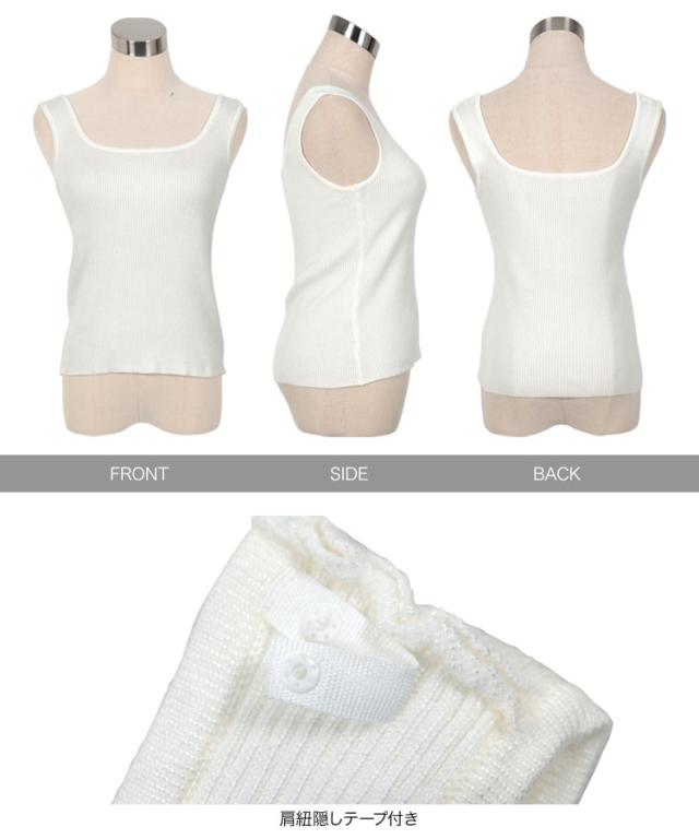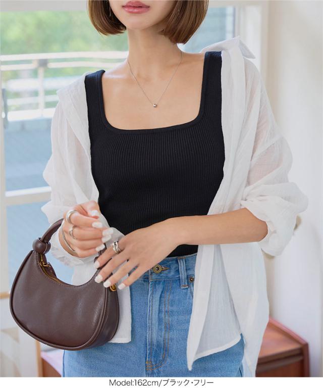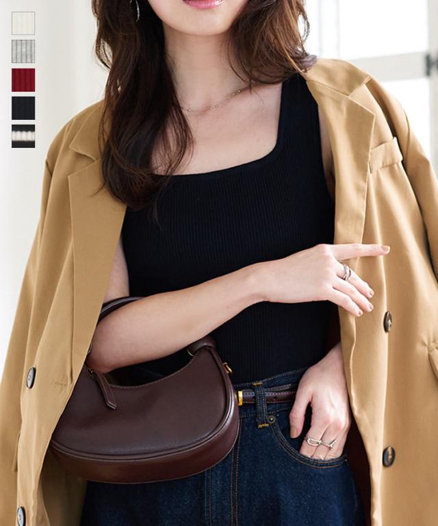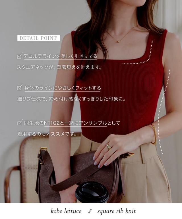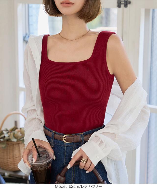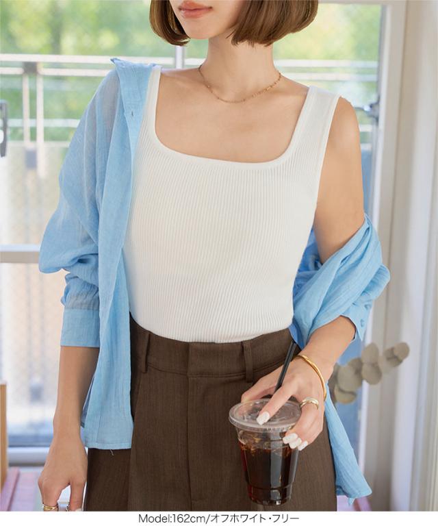 春新作 肩紐隠しテープ付きスクエアリブニット N1214 入荷済 レディース 20代 30代 40代 N1102 アンサンブル オフィス トップス ノースリ リブニット レイヤード 上品 ボーダー ストライプ リブ ニット タンクトップ スクエアネック スク