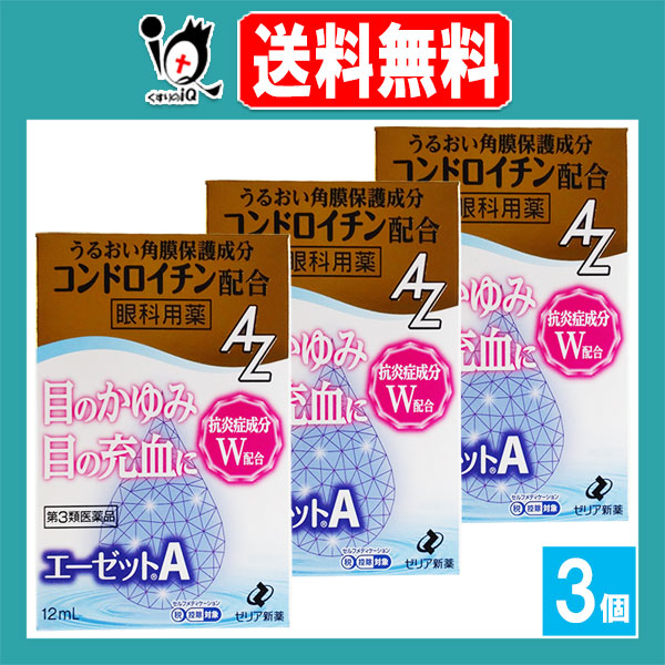 【第3類医薬品】★エーゼットA 12mL×3個セット【ゼリア新薬】眼科用薬 目のかゆみ・目の充血に 目薬 うるおい角膜保護成分コンドロイチン配合 目の充血・目のかゆみ・目のかすみ・目の疲れ 花粉症 アレルギー