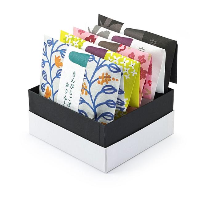 ご贈答用にオリジナルギフト箱入りの詰合せはいかがですか。 5種類のかりんとう(麻布かりんと・きんぴらごぼうかりんと・野菜ミックスかりんと・レーズンかりんと・うずまきかりんと)が入っています。 ※袋デザインリニューアルに伴い、ご購入された時期によって、袋デザインが掲載画像のものとは異なる可能性ございますこと、ご了承くださいませ。