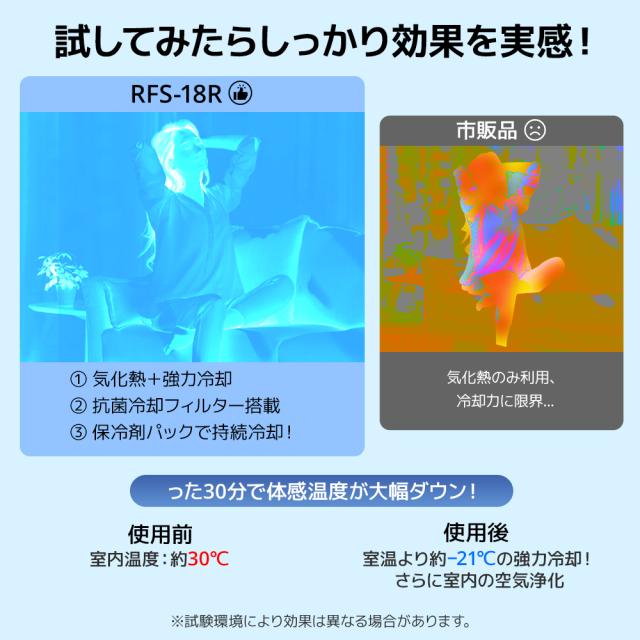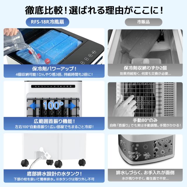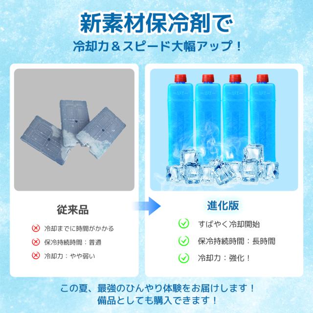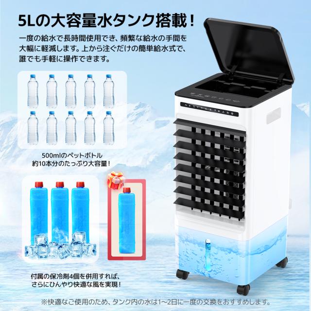 保冷バック4個付き、本体上部には保冷ポケット搭載、氷と一緒に保冷剤を入れることで冷却効果更にアップ!気化熱だけでは物足りない場合や、猛暑日におすすめです。7.5L大容量の下部タックがあるため、暑い天気には頻繁的にタンクに水を入れる必要がなく、長時間に連続稼働してもご安心ください。。