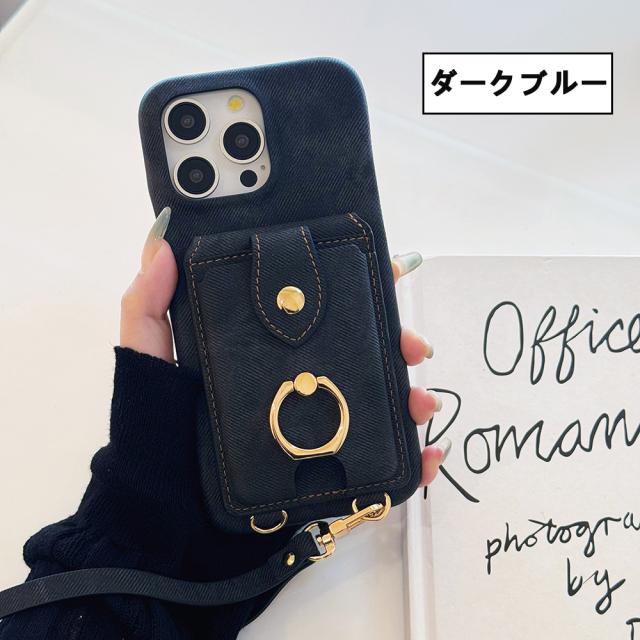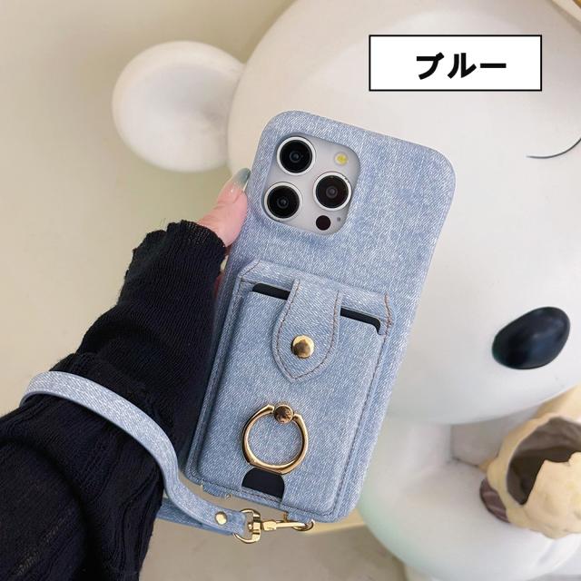 全8色 iPhone 16E iPhone 16 iPhone 16Pro iPhone 16Plus iPhone 16ProMax iPhone 17 iPhone 17Pro iPhone 17Air iPhone 17ProMax ケース iPhone 16 Pro Max 背面型スマホケース デニム風 シンプル ハンドストラップ付 落下防止