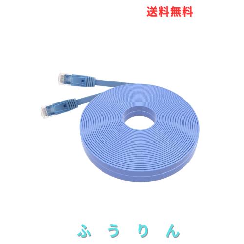 COOSEED フラットケーブル LANケーブル 30m UTP Cat6 ストレート ブルー