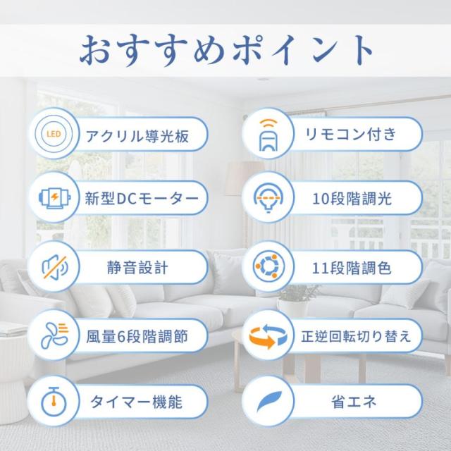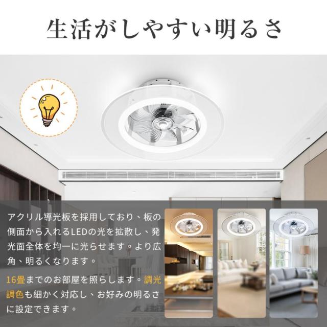シーリングファンライト シーリングファン ファン付き照明 扇風機 サーキュレーター 風量6段階 調光調色 メモリ機能 タイマー 省エネ
