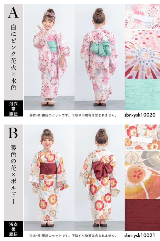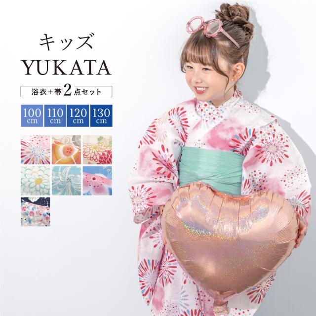 浴衣 子供 女の子 セット キッズ 兵児帯 浴衣セット 2点セット 子ども服 2026 くすみ 白 水色 青 赤 紺 橙 ピンク 花火 紫陽花 花柄 100 110 120 130 送料無料