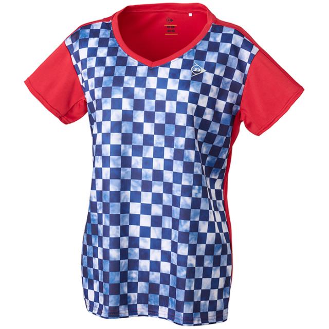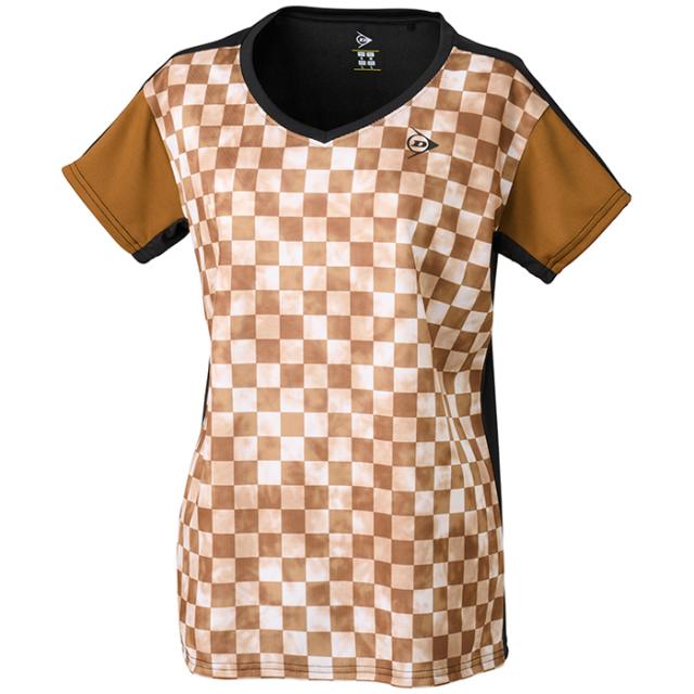 ダンロップ レディース ゲームシャツ GAME SHIRT テニス バドミントンウェア トップス 半袖 ホワイト 白 レッド ブラウン 赤 茶色 送料無料 DUNLOP DAP1422W