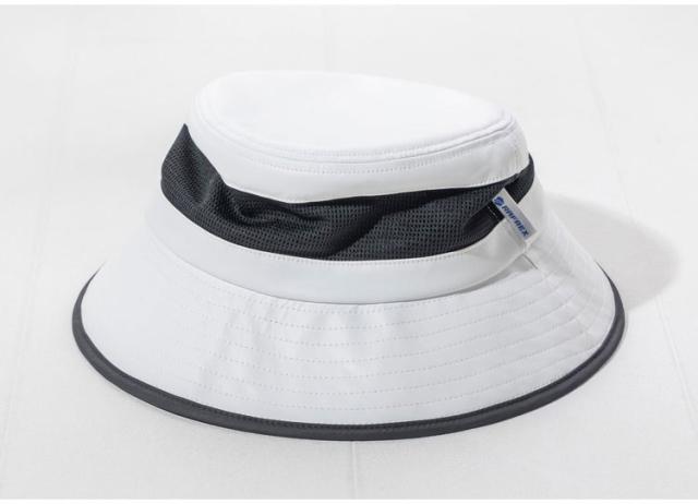 ツバと頭頂部は撥水も兼ねているラディクール生地で、ボディはメッシュ切替で抜群の通気性◎
