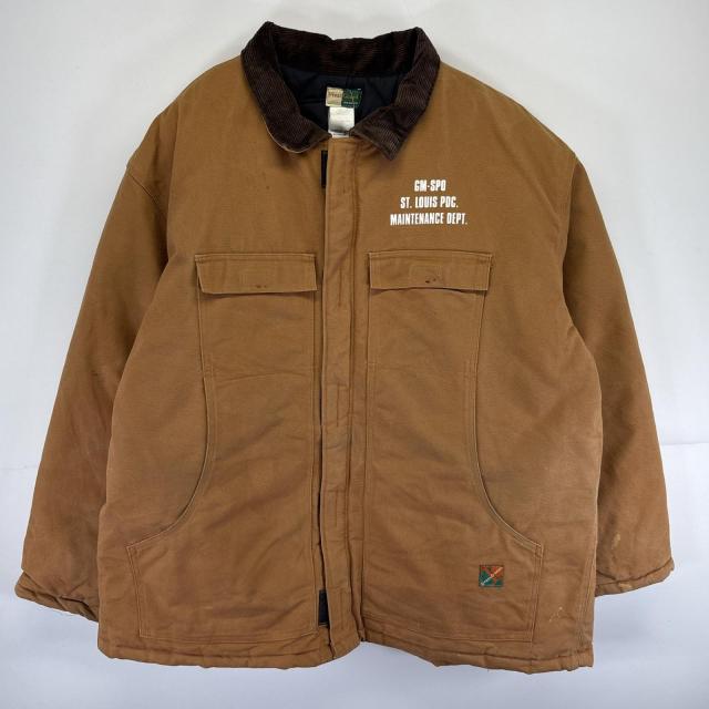 古着 ウェアガード Wear Guard ワークジャケット ダック 中綿 企業ロゴ コーデュロイ襟 大きいサイズ XXL ブラウン系 メンズ