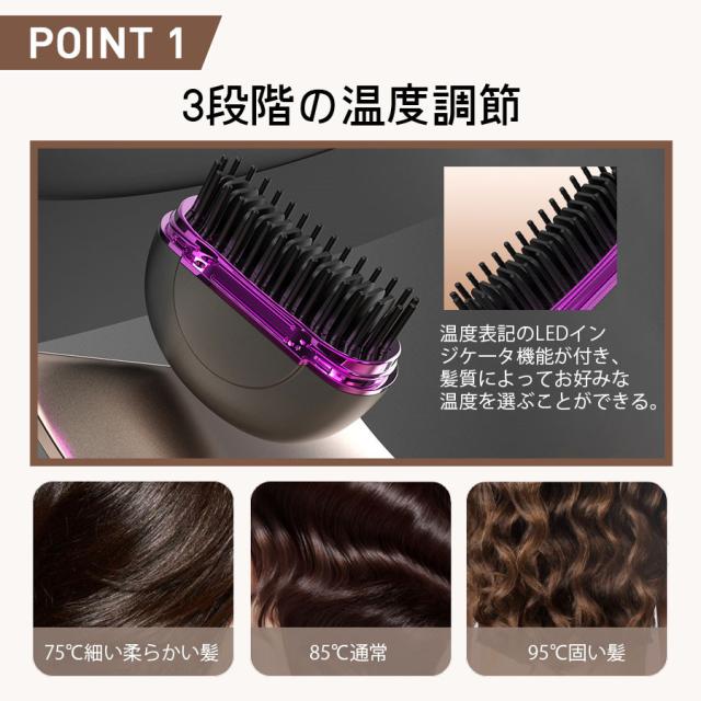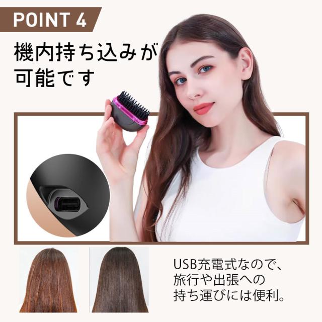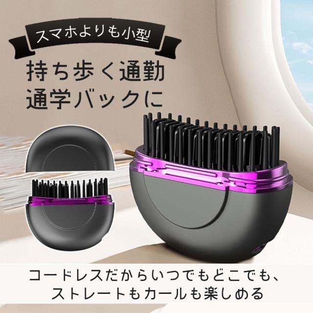 ヘアアイロン コードレス ヘアアイロンブラシ ストレート ヒートブラシ 前髪 コンパクト カール USB充電 3段階温度調節 軽量