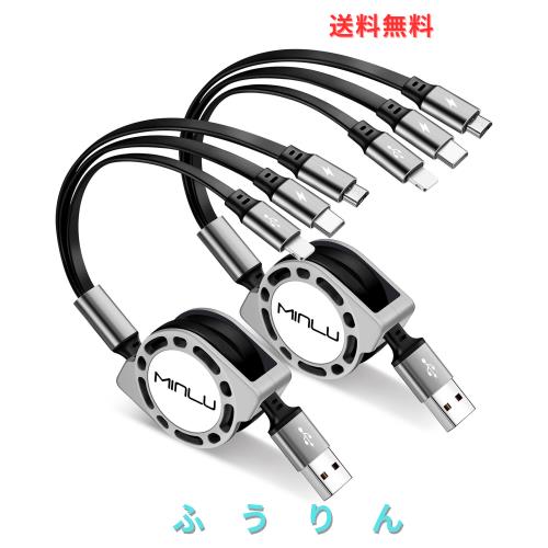 MINLU 充電コード 3in1 3.0A 2セット 格納式充電コード マルチUSBケーブル 高速充電器コードアダプター ライトニング/タイプC/Micro USB