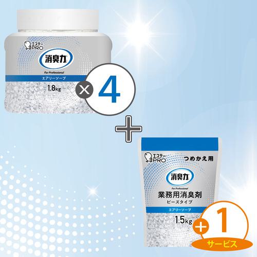 エステー 【期間限定】2025年8月30日まで ST13167消臭力 ビーズ本体1.8kgエアリーソープ(4個)+ST13034詰替1.5kgエアリーソープ(1個)おまけ付〔品番:ST13167-ST13034-CP〕[注番:7121484]