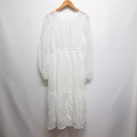 【中古】レトロガール RETRO GIRL 長袖 シアー マキシ ワンピース F 白 ホワイト 裏地付き レディース