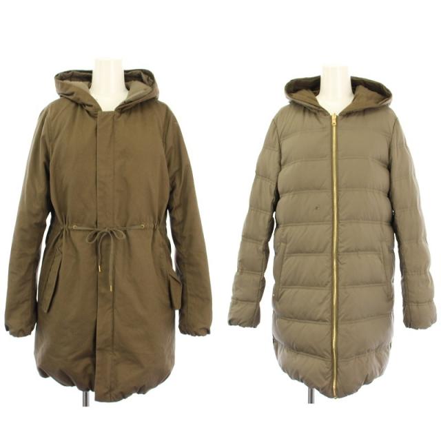 【中古】ドゥーズィエムクラス ダウンコート アウター ロング丈 リバーシブル フード ジップアップ 38 カーキ