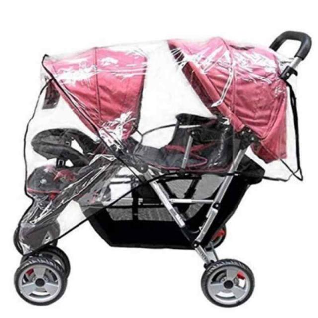 双子や年子の小さなお子様を抱えるお母さまには2人乗り用のベビーカーは大助かり。しかし突然の雨に対応できる大きなレインカバーはそうありません。このレインカバーは縦型の2人乗りベビーカー専用に制作された、高機能の風防です。