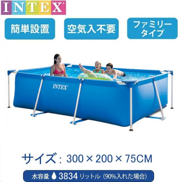 プール intex 大型 フレームプール 空気入れ不要 特大 長方形 300×200×75cm 組み立て簡単 丈夫 折りたたみ式 家庭用プール 大型プール レジャープール ガーデンプール パーティープール キッズプール 水遊び 家庭用 大人用 屋外用 庭 自宅 ベランダ 誕生日 プレゼント