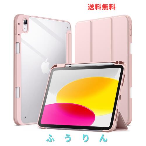 JETech iPad(A16)ケース 第11/10世代(2025/2022モデル)用Pencil収納可能 透明バックカバー 薄型 スタンド 衝撃吸収 タブレットカバー オートウェイク/スリープ機能 (サンディピンク)