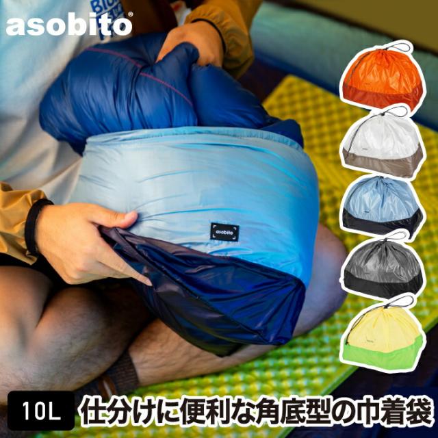 アソビト asobito スタッフサック Lサイズ 10L 軽量 巾着 収納バッグ ポーチ 角底型 仕分け 小物 バッグインバッグ 撥水素材 旅行 トラベル 2泊以上 衣類 寝袋 マルチケース アウトドア キャンプ ジム通い おしゃれ プレゼント ギフト 新生活
