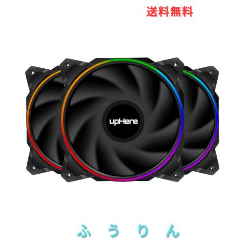 upHere 120mm PCケースファン 前後両面虹色LED 25mm厚 SATA電源 静音 3本【EN12CF3…