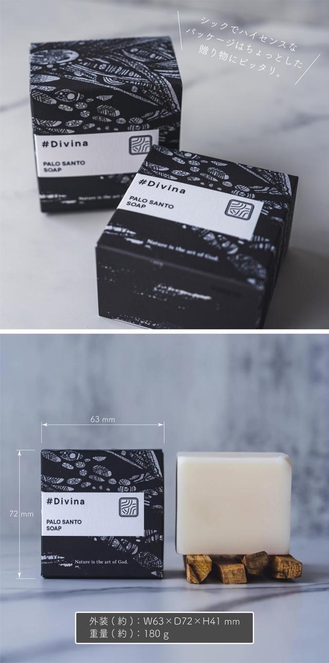 石けん Divina ディヴィーナ パロサント香木石鹸 180g 無添加 天然由来成分100% 化粧箱入り 植物由来成分 保湿成分・抗酸化成分配合 美容 ボディケア ハンドケア アロマ フレグランス ソープ 固形石鹸 ギフト 贈り物 プレゼント