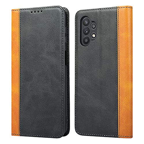 Galaxy A32 5G ケース Galaxy A32 ケース ギャラクシーa32 スマホケース scg08 ドコモ 手帳型 au 耐衝撃 カバー docomo Samsung マグネット式 カード収納 SoftBank レザー-ブラック+イエロー 送料無料