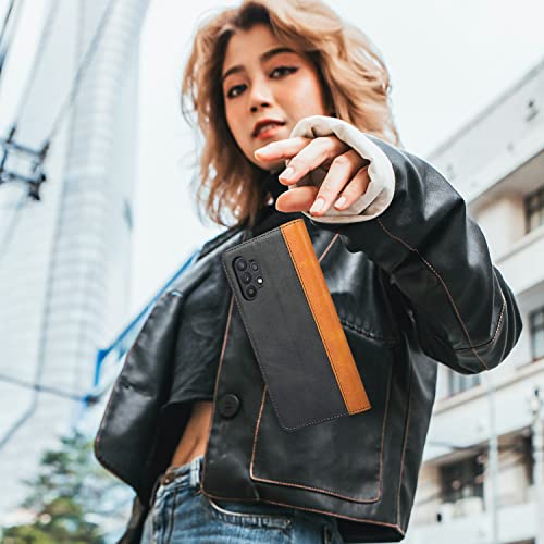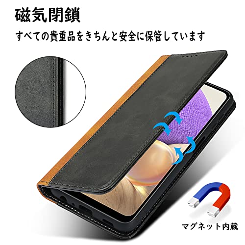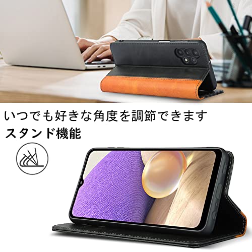 Galaxy A32 5G ケース Galaxy A32 ケース ギャラクシーa32 スマホケース scg08 ドコモ 手帳型 au 耐衝撃 カバー docomo Samsung マグネット式 カード収納 SoftBank レザー-ブラック+イエロー