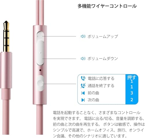イヤホン 有線 マイク付きイヤホン 3.5mm 有線イヤホン ゲーミングイヤホン HIFI音質 イヤホンマイク 音量調整 ク付き 重低音 通話可能 イヤフォン 有線 スマホイヤホン パソコン用イヤホン ピンク ps4 / ps5 / switch / xbox one / pc 適用