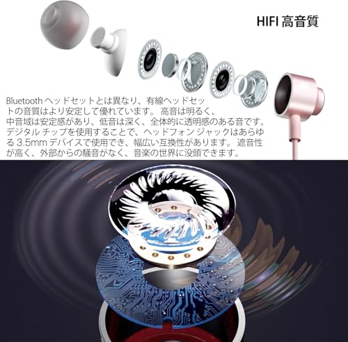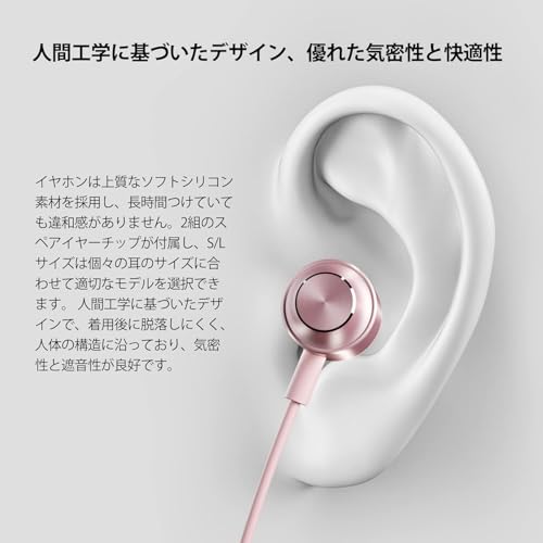 「人間工学設計の有線イヤホン」人間工学に基づいて設計された有線イヤホンは、ぴったりとフィットし、装着時