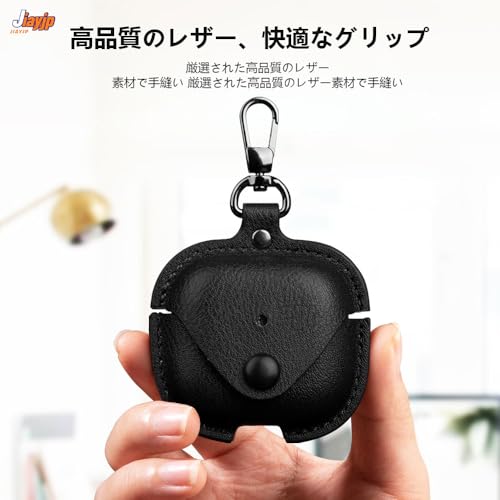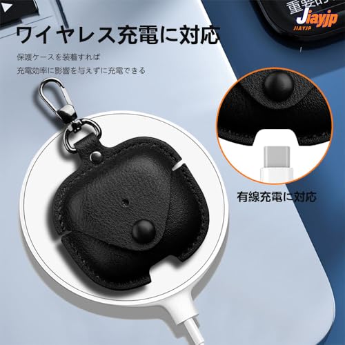 airpods 4 ケース本革 カバー レザー製 保護ケース 耐衝撃 airpods 4 用イタリアンレザー カバー 落下防止 キズ防止 ンケース 装着充電可能 全面保護 カラビナ付き(ブラック)