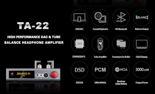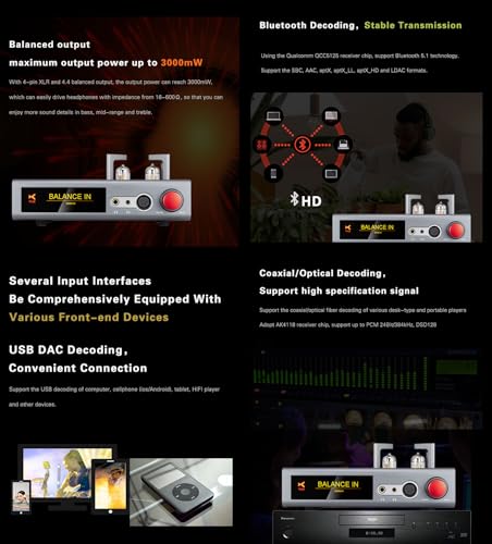 3000mW 真空管アンプ バランス ヘッドホンアンプ ES9038Q2M*2 DSD256 PCM 32Bit / 384kHz MQA HIFI DAC
