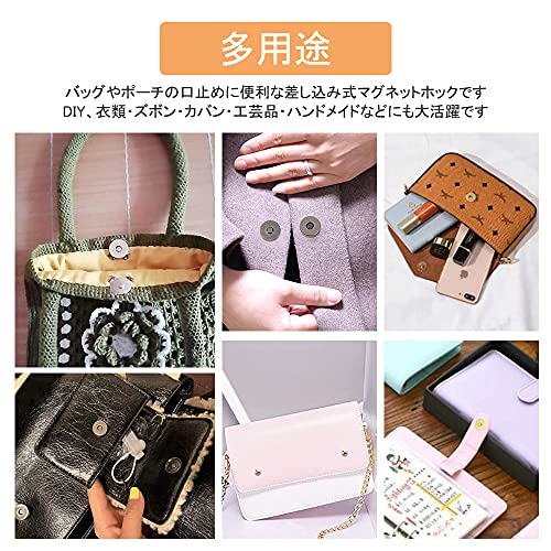 【多用途】バッグやポーチの口止めに便利な差し込み式マグネットホックです。マグネットは超強力、重い荷物を入れても、大きなバックにもご使用いただけます。DIY、衣類・ズボン・カバン・工芸品などにも大活躍です。