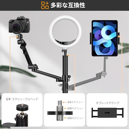 柔軟性:アームは左右360度、上下180度調整可能です。 1/4および3/8のねじ穴を自由に選択できます。 自由に組み合わせて取り付け、角度は左右360度、上下180度調整可能です。 期待する使用状況に合わせて自由に調整し、最適な録画およびストリーミング体験を得ることができます。
