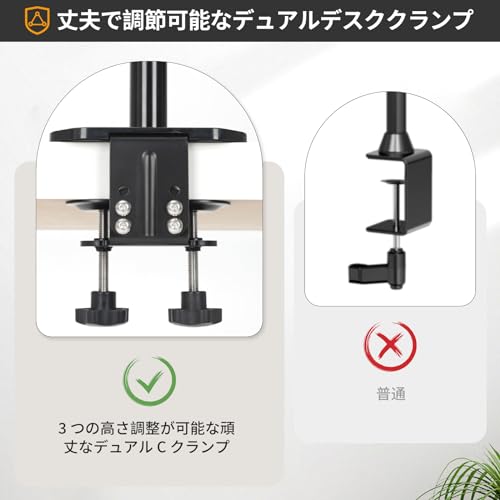 頑丈で耐久性があります:本体はアルミニウム合金で作られており、頑丈で耐久性があります。二重の固定部品により、このスタンドはオフィスデスクにしっかりと固定され、単一のアームは7-8キログラムの重さをサポートできます。重いカメラスタンドは安定性と耐久性を確保します。