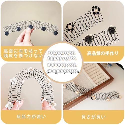 ヘアピン 髪束ね スプリングコーム ワイヤーコームコームタイプカチューシャ U型 前髪 見えない ヘアクリップ ヘアオーガナイザー スタイリングツール しっかり留まる 係る結婚式 パーティー 成人式 コンサート 和装 [4個セット]