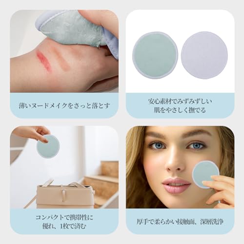 【高品質素材】このクリーニングパッドは高品質のベルベットと竹繊維で作られており、肌触りが柔らかく、優しく顔をケアし、敏感肌でも肌への負担を軽減します。 吸水性と通気性に優れ、強力な洗浄機能を持つクレンジングパッドです。