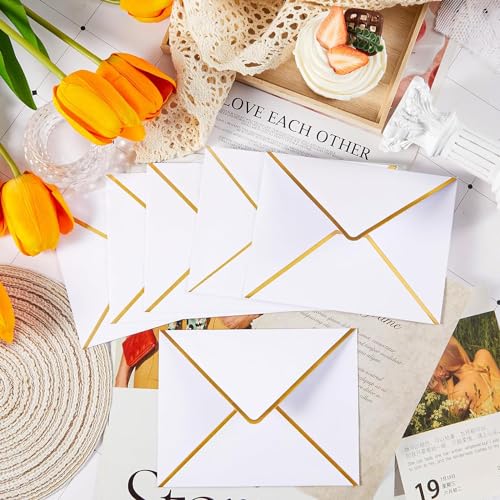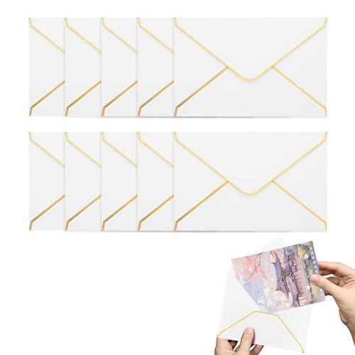 封筒 招待状封筒 業務用封筒 挨拶状封筒 ゴールドボーダー おしゃれ シンプル 無地 お祝い 挨拶 結婚式 感謝祭 記念日 誕生日 ラブレター お見舞い お礼状用 メッセージカード 案内状 ポストカード 招待状 (ホワイト 10枚入) 送料無料